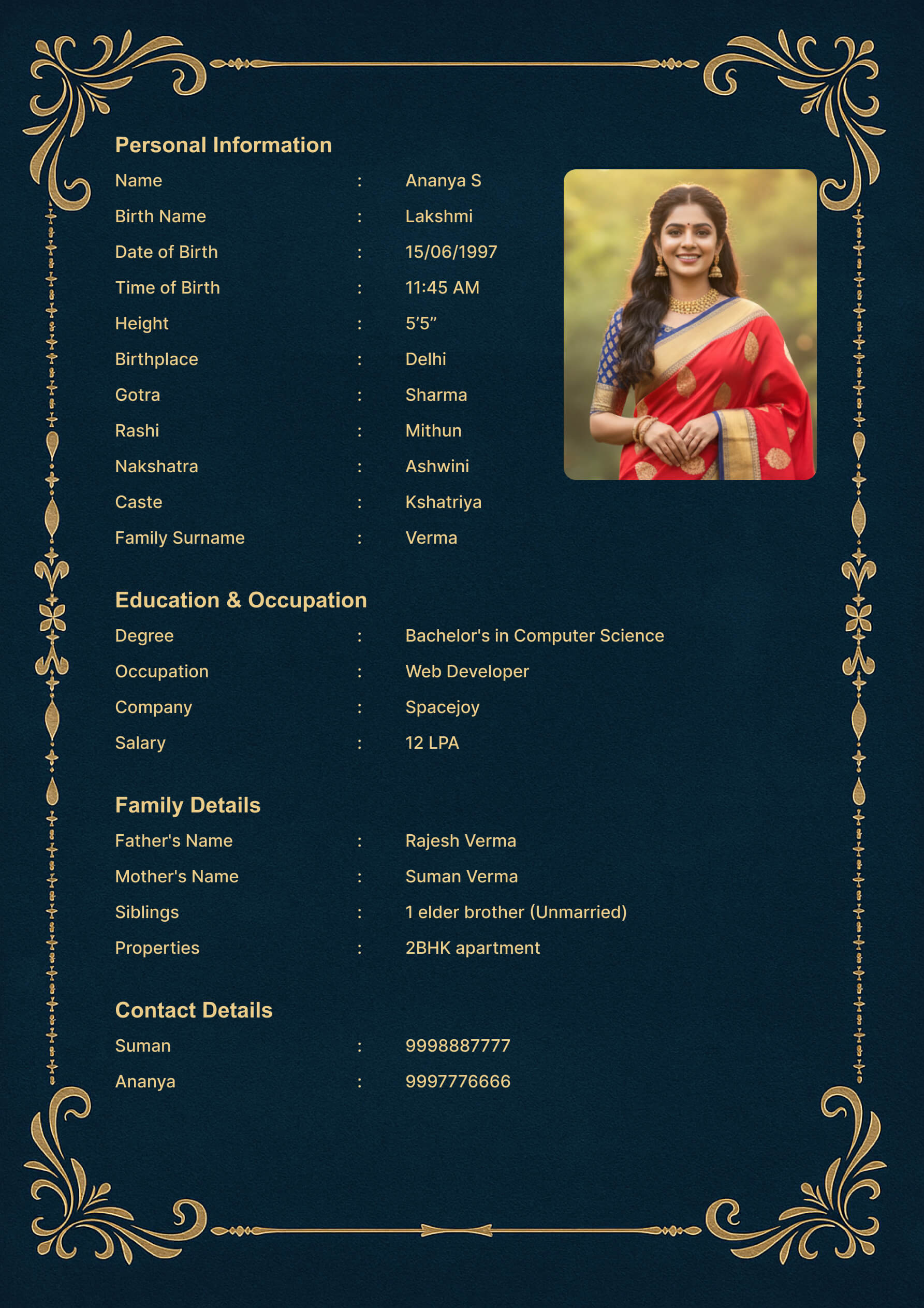 - Higher clarity: Sections are pre-structured for matrimonial use.